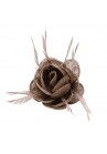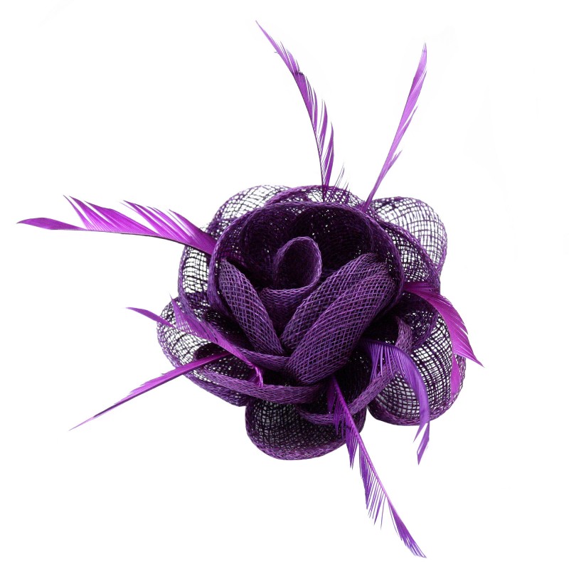 - Bouton de Fleur en sinamay Rouge, Rose, Ivoire, Beige, Noir, Marron clair, Marron, Violet, Marron Foncé, Gris ou Bleu turquoise munie d'une épingle à nourrice et d'une pince, accompagnée de plumes. Idéal pour vos cérémonies grâce à ses 2 fonctions broche ou pince.