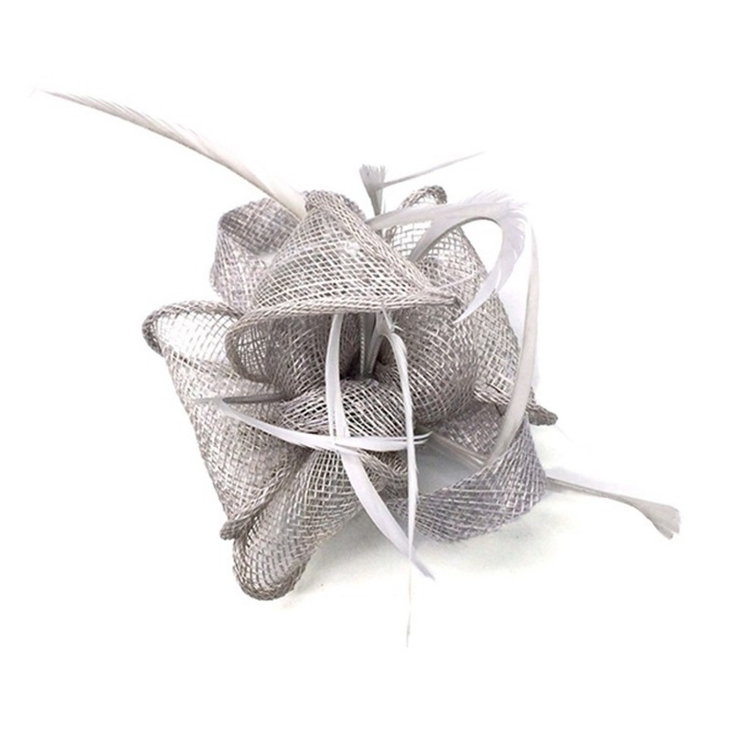- Fleur en sinamay Rose Fushia, Jaune ou Gris, accompagné de plumes et d'un effet ruban, munie d'une épingle à nourrice et d'une pince, accompagnée de plumes. Idéal pour vos cérémonies grâce à ses 2 fonctions broche ou pince.