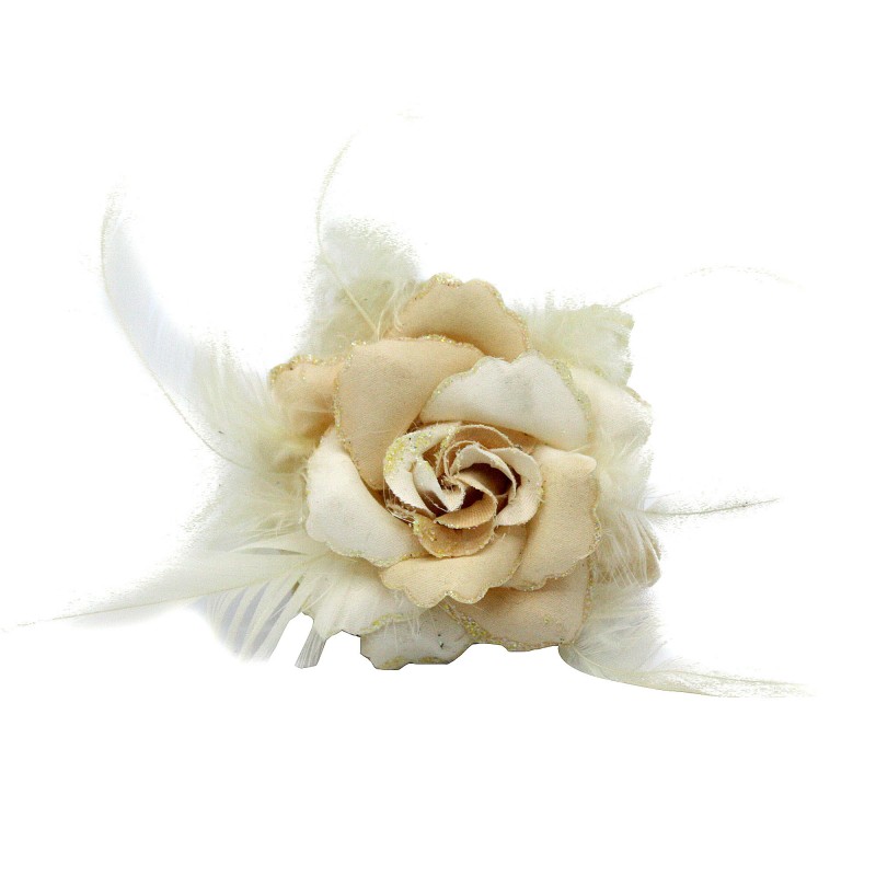 - Fleur en tissu munie d'une épingle à nourrice et d'un élastique, elle scintille grâce à ses bordures de paillettes. Idéal pour vos cérémonies grâce à ses 2 fonctions broche ou chouchou.