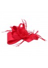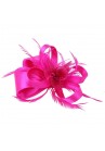 Chapeau Noeud Bibi en Sisal (fibre de plante) et en plume de coq disponible en (Rose Fushia, Noir, Rouge, Blanc, Bleu Turquoise et Beige).