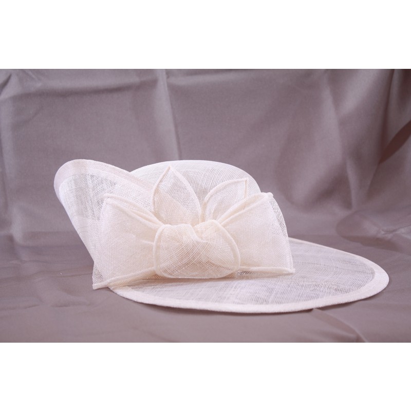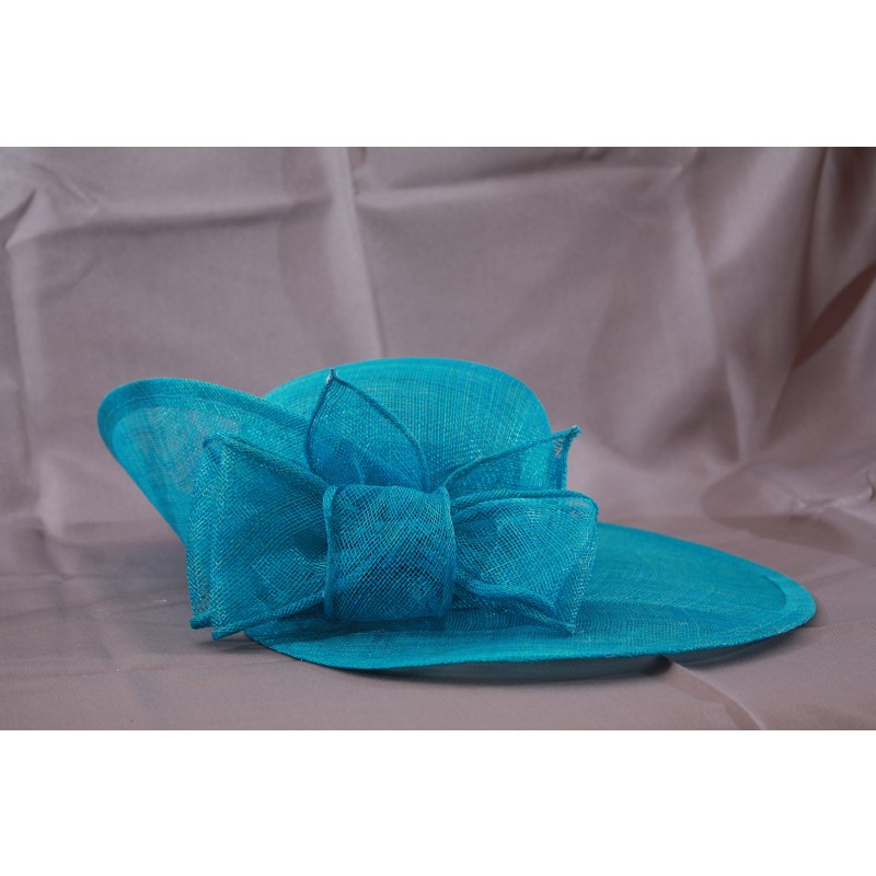 - Capeline en sinamay demi plié d'une largeur de 42cm bleu marine, rouge, ivoire, rose fushia, rose corail, bleu turquoise, gris ou marron, muni d'un noeud sur le milieu, vraiment idéal pour toutes vos cérémonies.