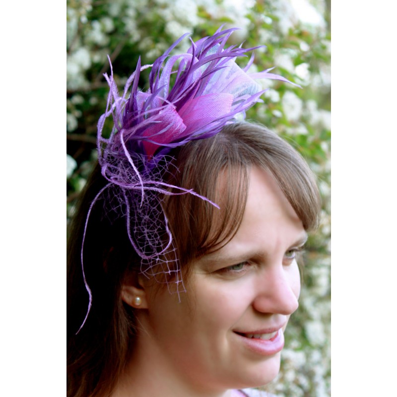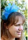 - Serre tête de mariage en Tulle avec des plumes et un filet de couleur Rouge, Bleu roy, Bleu Ciel, Noir, Rose, Violet ou Orange