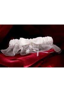 - Jarretière pour mariée en voile simple blanc, elle est agrémentée d'un ruban en satin formant un noeud incrusté d'une fleur argenté et de pistils sur le milieu. Jarretière à enfilée. En savoir plus6,96 € -