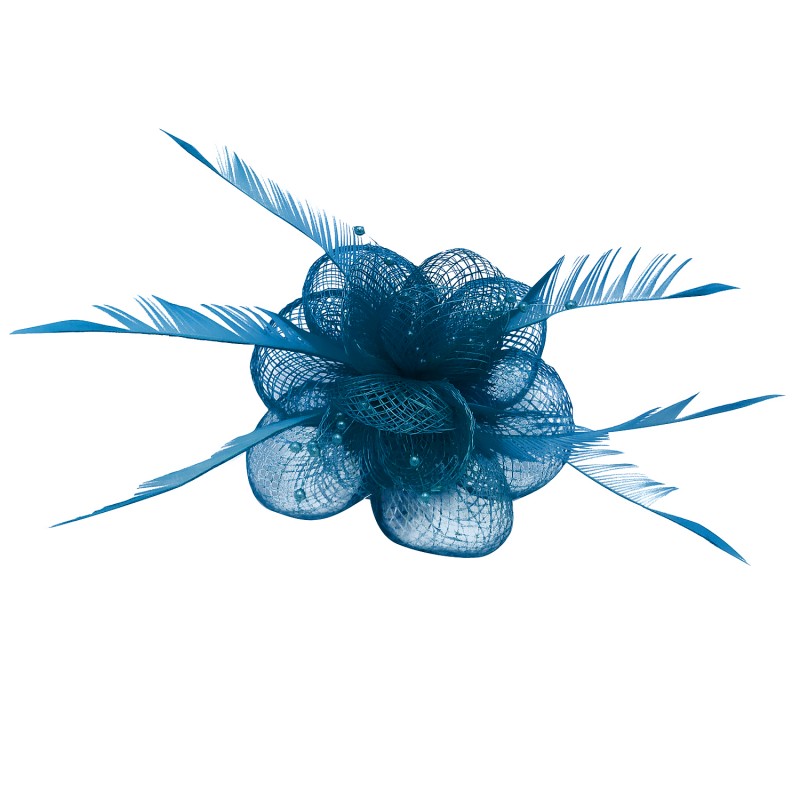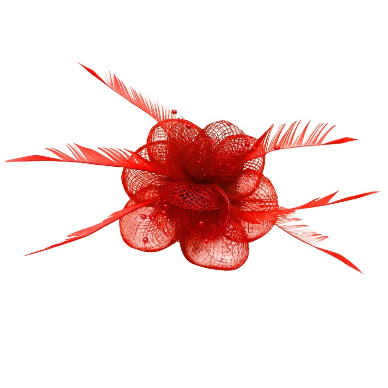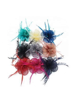 - Fleur en sisal munie de pétales Unicolore (Rouge, Rose Fushia, Ivoire, Noir, Rose, Gris, Bleu Marine, Bleu, Bleu Turquoise) accompagnée de perles et plumes.