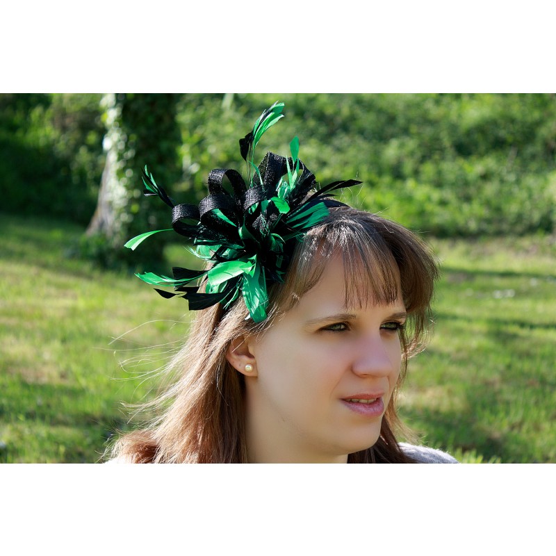 - Serre tête bicolor Bleu Turquoise / Bleu Roy, Rose Fushia / Orange, Vert / Noir ou Violet / Rouge orné de plumes muni de ruban en sisal.